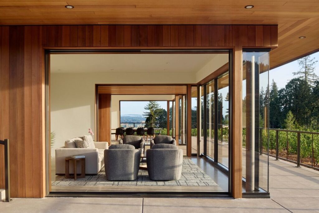 Hinting at the clean lines of Asia, the winery conveys intentionality. Architect Juancarlos Fernandez of Signum Architecture laid out three low-slung buildings around a heritage redwood, linking them with simple walkways so the structures read as a small compound rather than one monolithic room. Landscape architect Hoichi Kurisu, long associated with the Portland Japanese Garden, shaped the courtyard and plantings so each path and window frames a slice of sky, tree, or vine.
