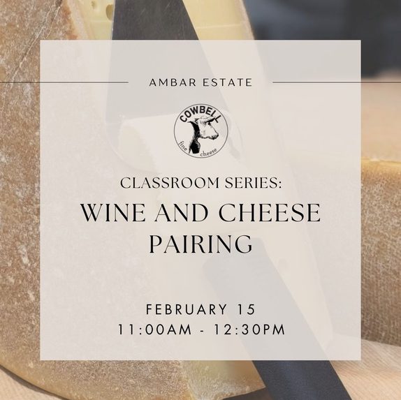 Taste through a selection of cheeses curated by Chef Heidi and Ian Conway of Cowbell Creamery designed to pair perfectly with Ambar Estate wines. Learn the story behind the creameries and how to create your own memorable wine and cheese pairings.