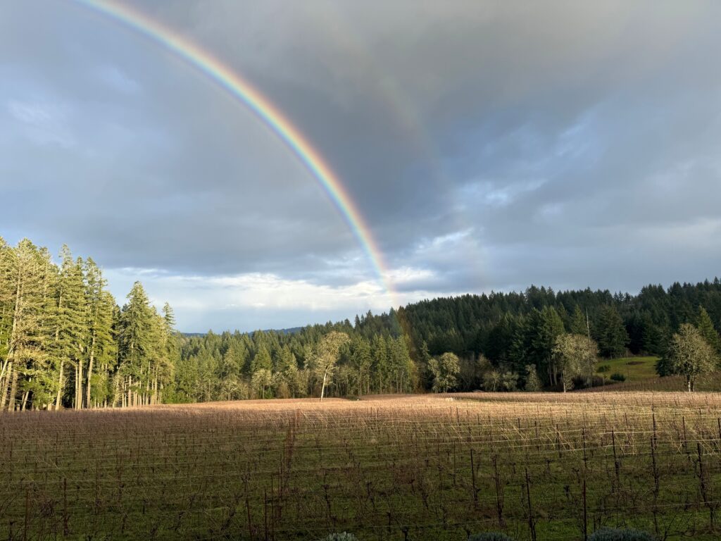 The Oregon winter has many drippy days, but occasionally the sun breaks through in glorious fashion. On a recent afternoon a double rainbow arched over Ambar and came to rest on Writer’s Block and Maple Block, from which we draw fruit for our Minera Chardonnay. Next month we will be releasing the 2024 Minera, an un-oaked, concrete-fermented Chardonnay exclusively for Ambar Circle members. We’re proud that our Minera is at the end of the rainbow.